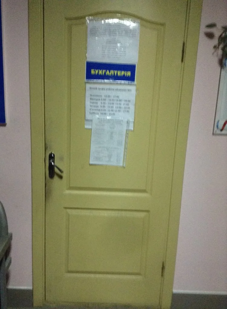 Через вікна видно, що з приміщень у цьому будинку зробили склад, де хаотично накиданий різноманітний офісний інвентар. Над входом у будівлю є табличка, де вказано, що ведеться відеоспостереження. Хоча це не відповідає дійсності – камер зовнішнього спостереження тут немає.