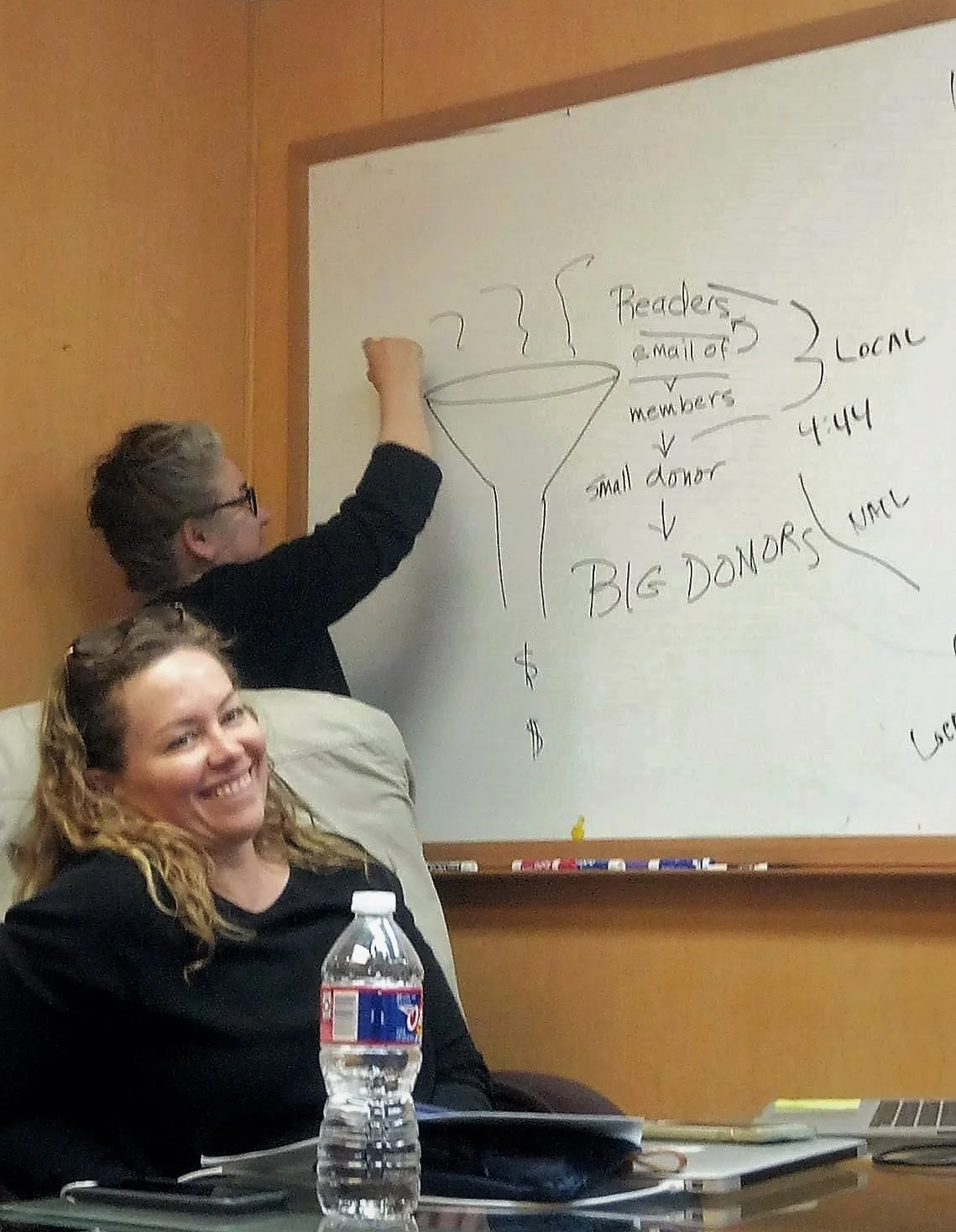 Директор по развитию организации Енн Мюллер поделилась с нами секретами финансовой стабильности. Она рассказала, что финансово их постоянно поддерживают читатели, поэтому они очень много работают для продвижения публикаций, которые в результате приносят деньги. Чем интересней для людей работа журналистов, тем больше читателей приходят на сайт.