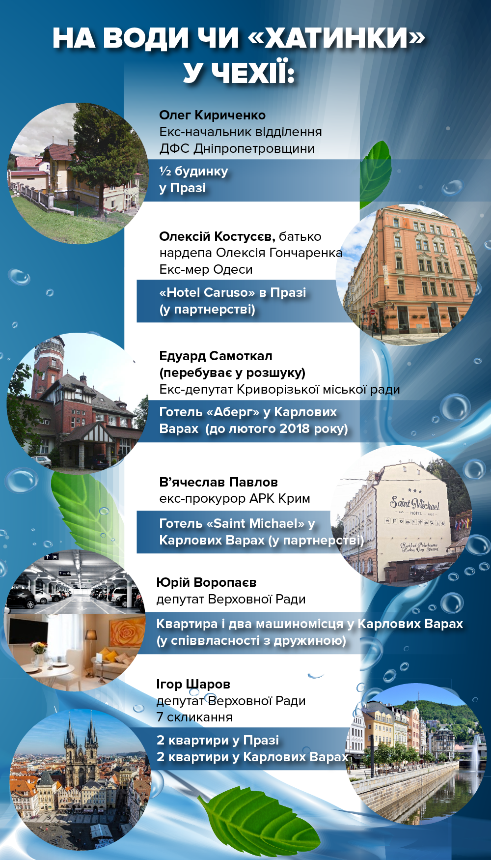 Як і сто років тому, українські багатії мають нерухомість на водах за кордоном. От тільки якщо на початку 20 століття маєтки у Карлових Варах мали переважно власники фабрик та заводов і родичі монархів, то тепер це – чиновники. Колишні та теперішні, великі та малі. А хто саме має нерухомість у Чехії? Проаналізував проект «Муніципальний сканер»