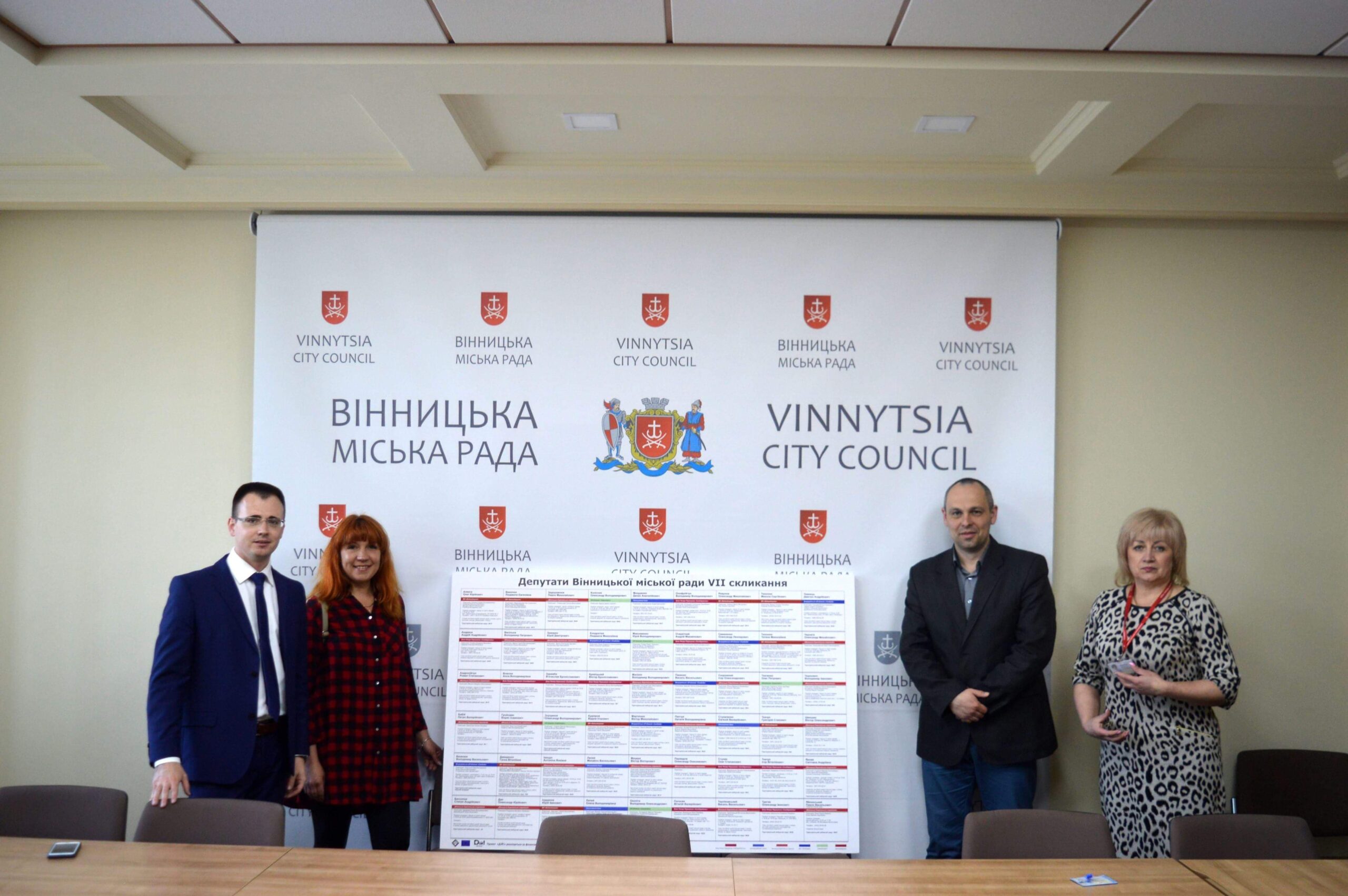 Вчора, 25 квітня, «ДІЙ!-Вінниця» передав до Вінницької міської ради подарунок – стенд з контактною інформацією, інформацією про виборчі  округи, місця та часи прийому, помічників та партії усіх депутатів міської  ради.