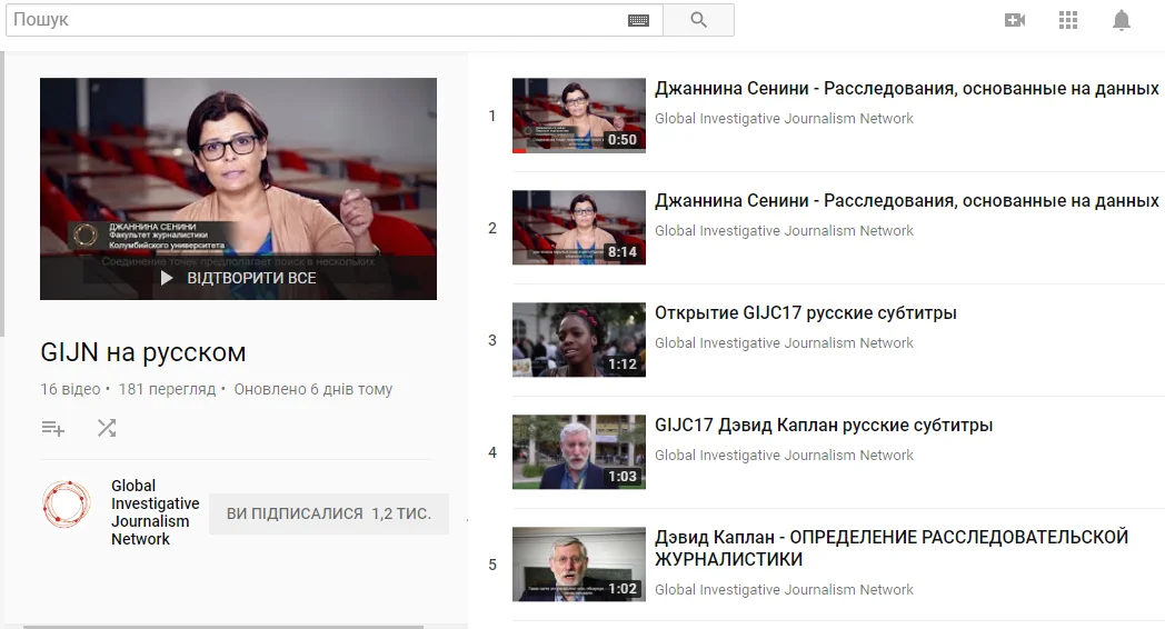 Унікальна підбірка навчальних відео з перекладом від GIJN – Глобальна мережа журналістів-розслідувачів (GIJN – Global Investigative Journalism Network). Для всіх, кому цікава журналістика розслідувань – Відеосерія порад та інструментів для розслідувачів тепер доступна на 5 мовах!