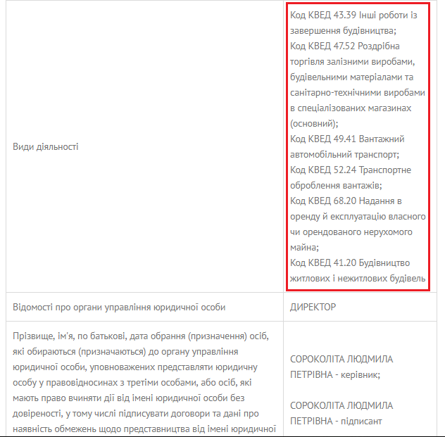 Згідно реєстру юридичних та фізичних осіб ПП «Роксана» немає відповідних КВЕДів на поставку меблів та техніки.
