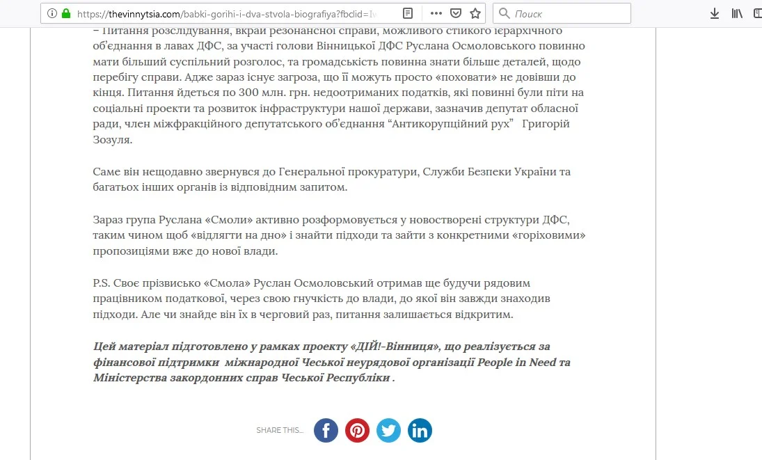 Офіційно заявляємо, що ні журналісти Інформагенства ВОГО «Агенція журналістських розслідувань», ні ЦГК «ДІЙ!-Вінниця», а тим більше, People in Need та Міністерство закордонних справ Чеської Республіки жодного стосунку до підготовки чи публікації даного тексту та ресурсу  The Vinnytsia не мають!