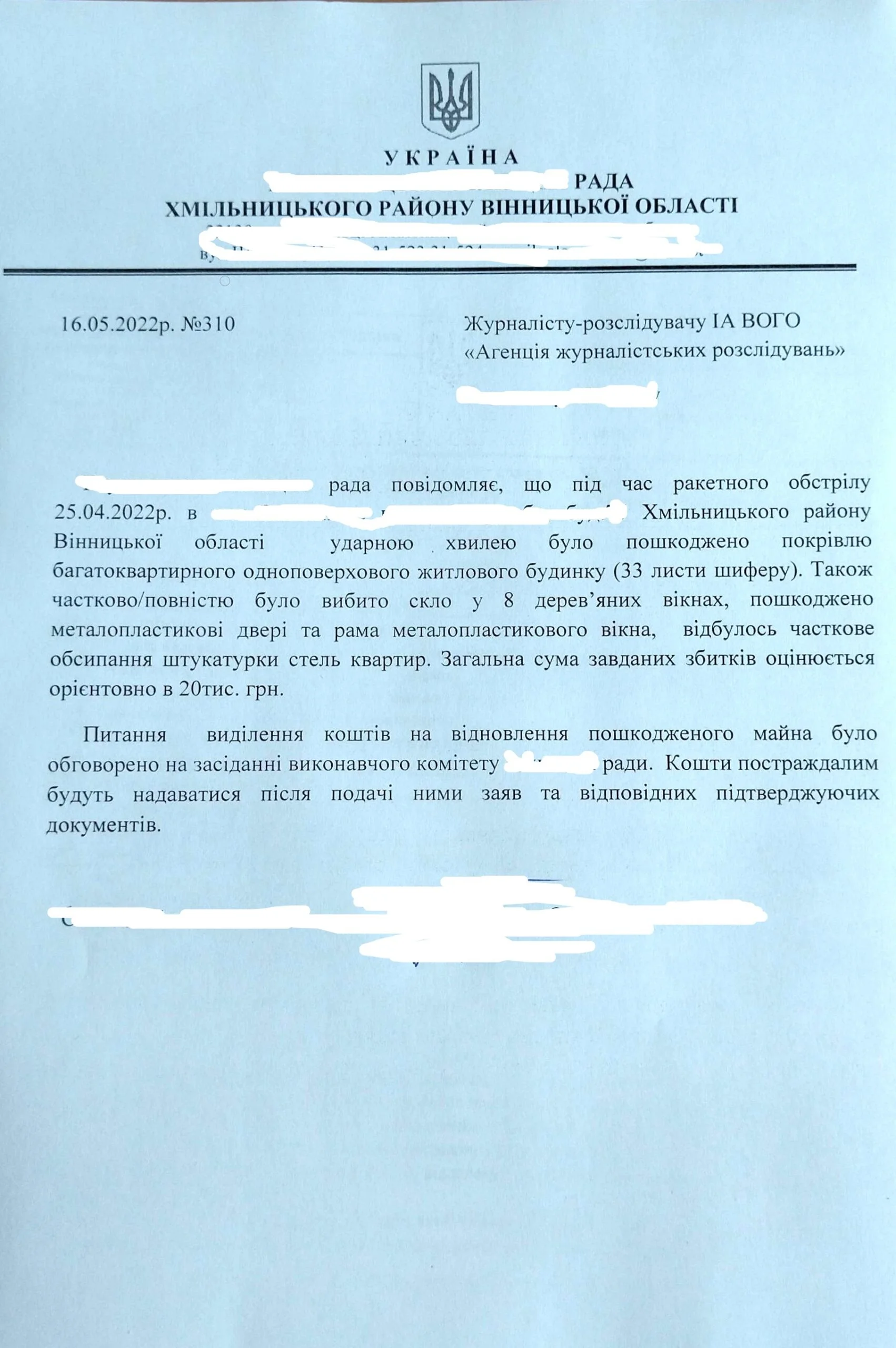 Органи місцевого самоврядування встановили суму компенсації на весь будинок у 20 000 гривень.