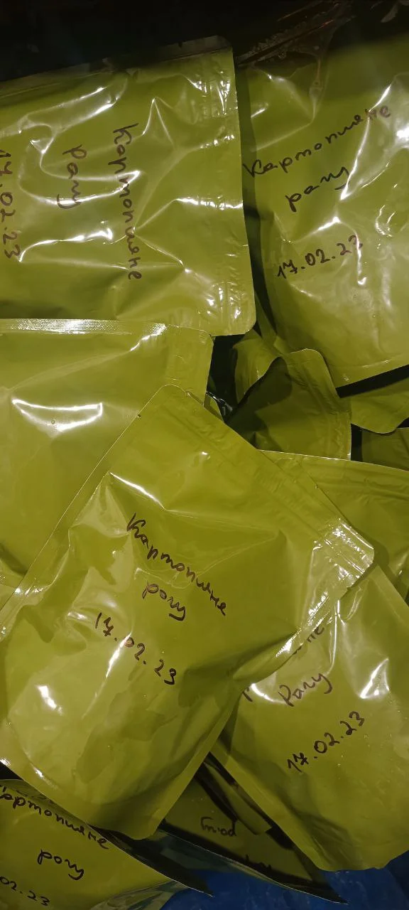 Десь тут я згадала, що в туризмі є такі собі “сухі пайки”, колись я цікавилась їх приготуванням. Передивилась кілька відео на ютубі, я знайшла постачальників реторт пакетів, з’ясувала який потрібен запаювач і за якийсь час приготувала перші каші. То виявилось нескладно, схема приготування така ж сама, як і в тушонки в автоклаві, тільки пакети, в яких я готую, набагато зручніші для використання військовим.