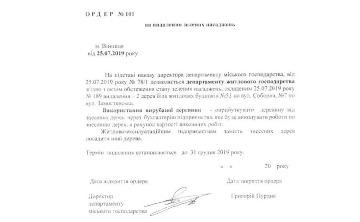Також нам наддали копію акту обстеження зеленого насадження, а саме дерева липи зі стовбуром 55 сантиметрів. Доки не розпочалось будівництво, вона була здоровим зеленим деревом. А у акті обстеження «вона досягнула вікової межі » і її дозволили зрізати.