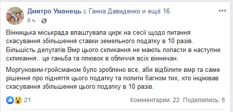 Дмитро Уманець свою точку зору після сесії виклав на своїй сторінці в Фейсбуці.